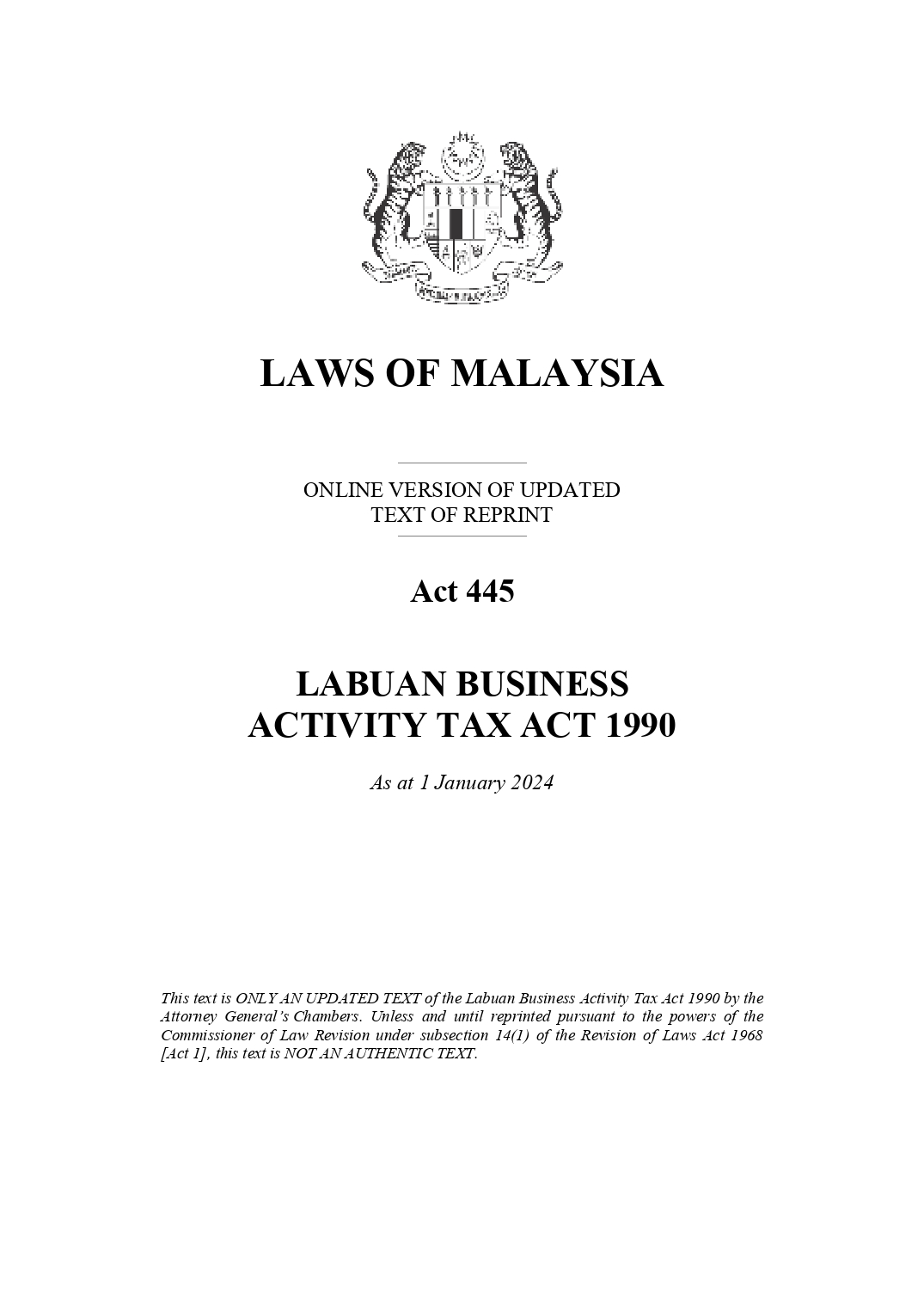 Tax matters under LBATA 1990 are administered by the Labuan Financial Services Authority, with oversight from the Malaysian tax authorities, within the broader framework of Malaysia.
